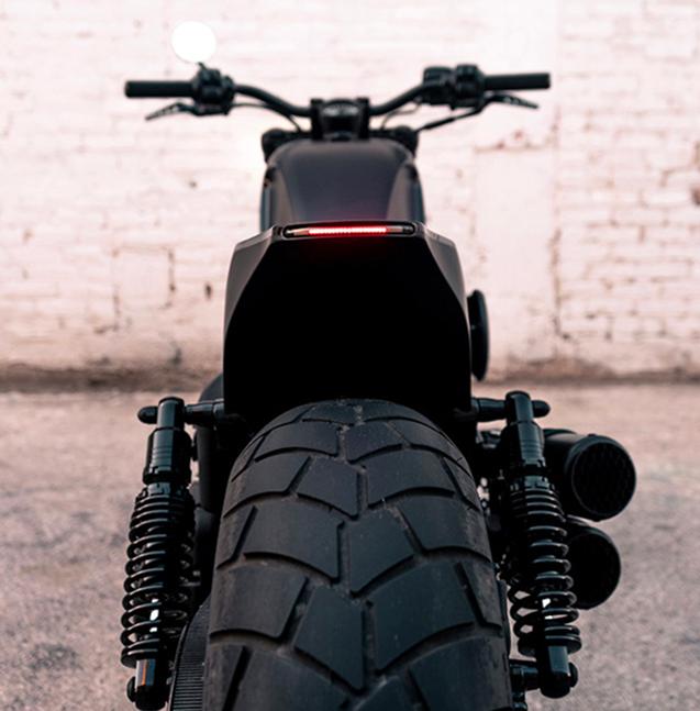 И вот Кольт изготовил небольшой подрамник для установки хвоста в одну линию с баком. После изготовления элемента из листового алюминия, он встроил в него задний фонарь в виде диодной линейки от Radiantz LED. А затем отправил хвост с баком на покраску в Chisca Customs.