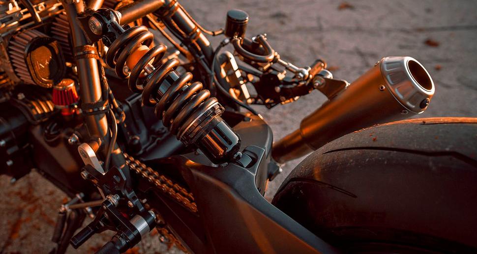 NCT распилили Ducati Monster 1100 EVO на запчасти, взяв с него колёса, односторонний маятник, задний амортизатор и задний тормоз. такую модификацию команда уже производила, так что они знали, к какому месту рамы приваривать крепление нового амортизатора.