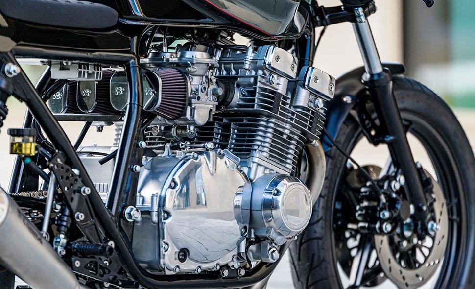Учитывая, что пробег у мотоцикла меньше 20 тысяч, в двигатель Katana серьёзно лезть не пришлось. Он был просто как следует отчищен и наполирован, а заодно снабжён новым цифровым зажиганием. Вместо аирбокса установили капсульные фильтры K&N, а заодно поставили выхлоп 4-в-1 от Cobra. Новая электрика основана на центральном контроллере от Axel Joost Elektronik и литий-ионной батарее от Acewell.