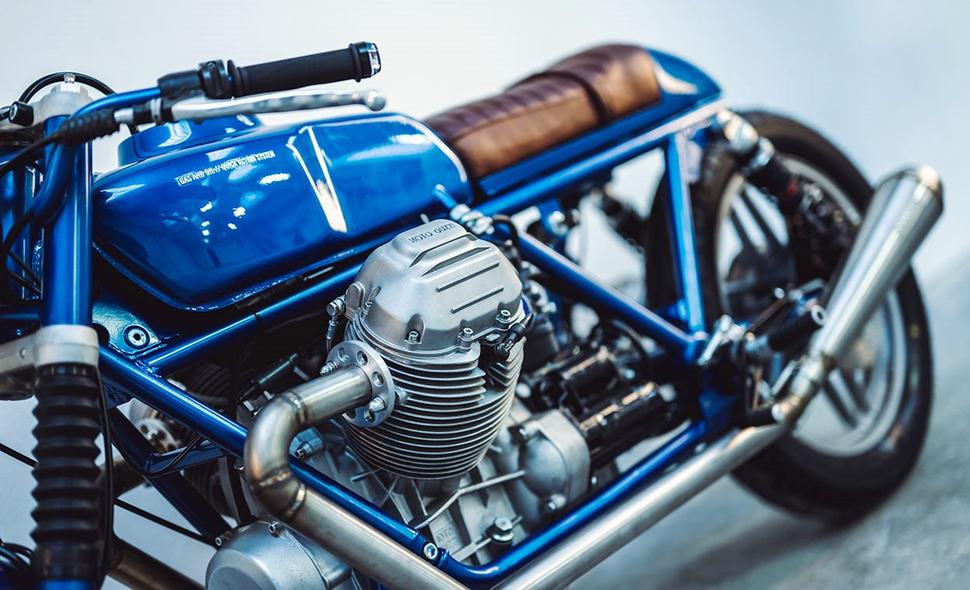 Кастом All Blue основанный на Moto Guzzi SP1000 - это великолепное воплощение самого духа классических Guzzi, с шикарным V-твином в качестве центрального элемента. И пусть современный кастомайзинг порой становится чемпионатом по крутизне используемых технологий, но проекты, подобные этому, доказывают, что на кастом-сцене ещё осталось место для олдскульной крутизны.