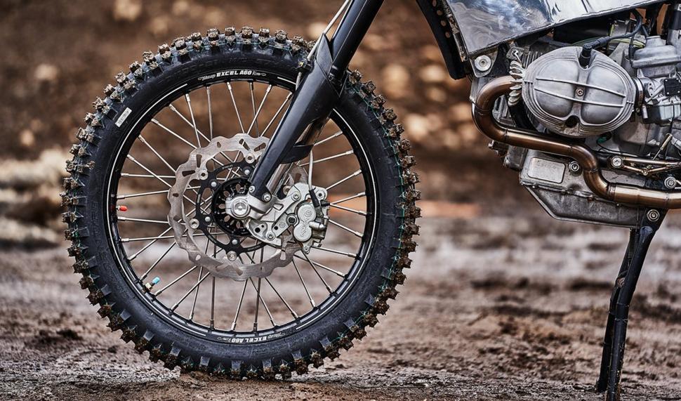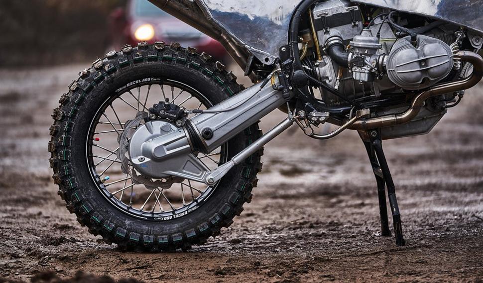 Пару задней шине составляет шина Goldentyre ‘Fatty’ для экстремального эндуро. Грегор говорит: