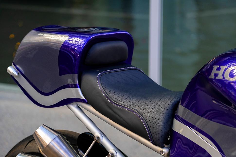 Затем были установлены клипоны Tarrozzi, обновлённые рычаги Nissin и трёхкнопочные пульты Purpose Built Moto. Под левым пластиком находится термометр, а скорость и обороты выводятся на установленные друг над другом круглые приборы Daytona, прикреплённые к пауку переднего пластика. После настройки на диностенде VFR выдал 86 лс с заднего колеса, а вес в итоге составил 175 кг.