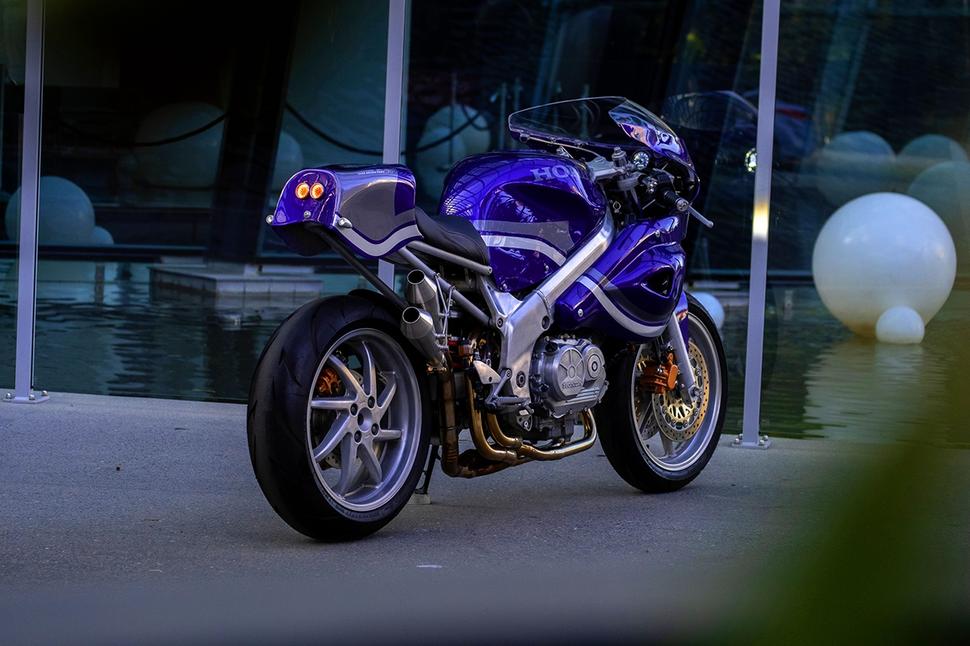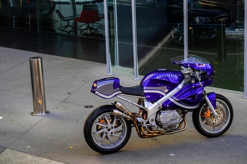 Всё новое — это хорошо забытое старое: откройте архив мотожурналов и убедитесь, что V4 — это далеко не очередное современное новшество. Этой конфигурации двигателя уже около 90 лет, а в 80-х Honda с большим успехом использовала их на треке, да и не только. Так что для своего ретро-спортбайка Purpose Built Moto из Квинсленда взяли Honda VFR750 1994 года и создали из него свой первый полностью капотированный кастом. Результат - очаровательный спортбайк, лёгкий, мощный и стремительный - хоть на ходу, хоть на подставке.