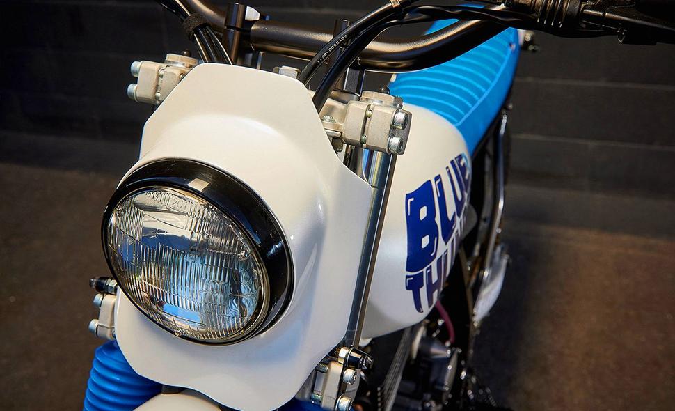 Затем было установлено множество менее заметных, но важных и качественных деталей: поворотники от Motogadget, грипсы Biltwell, зеркала Daytona, спидометр Velona 80, крохотный диодный задний фонарь Koso Hawkeye. Крепление номера - каталожная запчасть Ellaspede под названием Ninja Star. Да-да, это первый виденный лично мной Yamaha TTR на номерах!