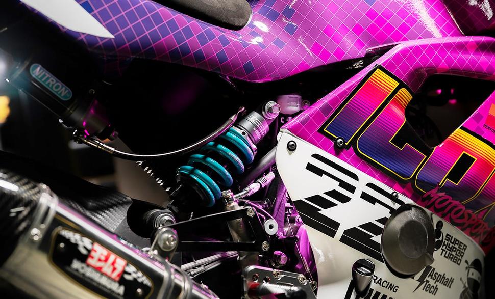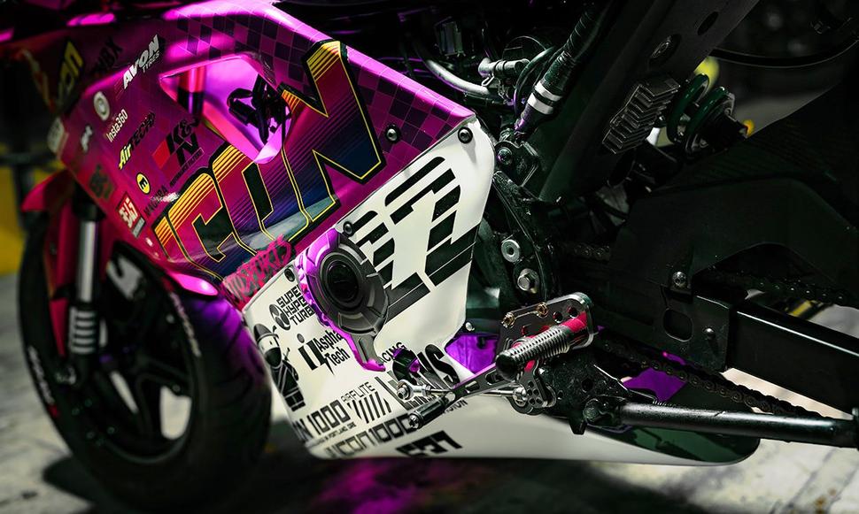 Созданная по мотивам легендарной Yamaha OW-01, которая существенно крупнее Kawasaki Z125, капотировка была тщательно подогнана для Kawasaki. ICON изготовили из стеклопластика новый цельный кожух бака и хвостовой элемент, а затем добавили седло с набивкой из гоночной пены и целую кучу напечатанных на 3D-принтере деталей.
