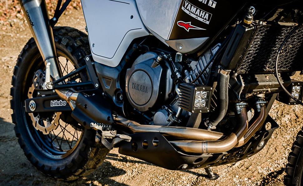 Двигатель у Yamaha Super Tenere Дакар -родной, но мастера произвели с ним обычные манипуляции. Воздушный фильтр заменили на фильтр K&N, а жиклеры карбюратора на новые Dynojet. Выхлопная система собрана из коллекторов Arrow и модифицированного глушителя Virex.