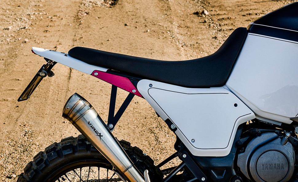 Изменения наиболее заметны в передней части мотоцикла. Мастера избавились от оригинального обтекателя Yamaha, чтобы установить что-то более грациозное, более соответствующее дизайну современных ралли мотоциклов. Новый передний обтекатель был изготовлен вручную из стекловолокна. Он был сконструированы таким образом, чтобы в него можно было встроить оригинальную приборную панель и световые приборы, закрытые новым кожухом из оргстекла.