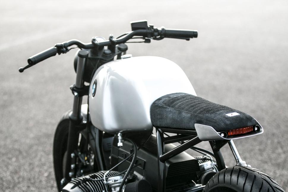 Настало время декора, и как и со всеми мотоциклами, прошедшими через руки Буджара и Газменда, философия их дизайна - в красоте простоты. Но не думайте, что это просто: такой подход требует умения и тонкого чувства вкуса. Бак BMW был тщательно выглажен, а затем зашпаклёван и покрашен в классический Ferrari Silver.