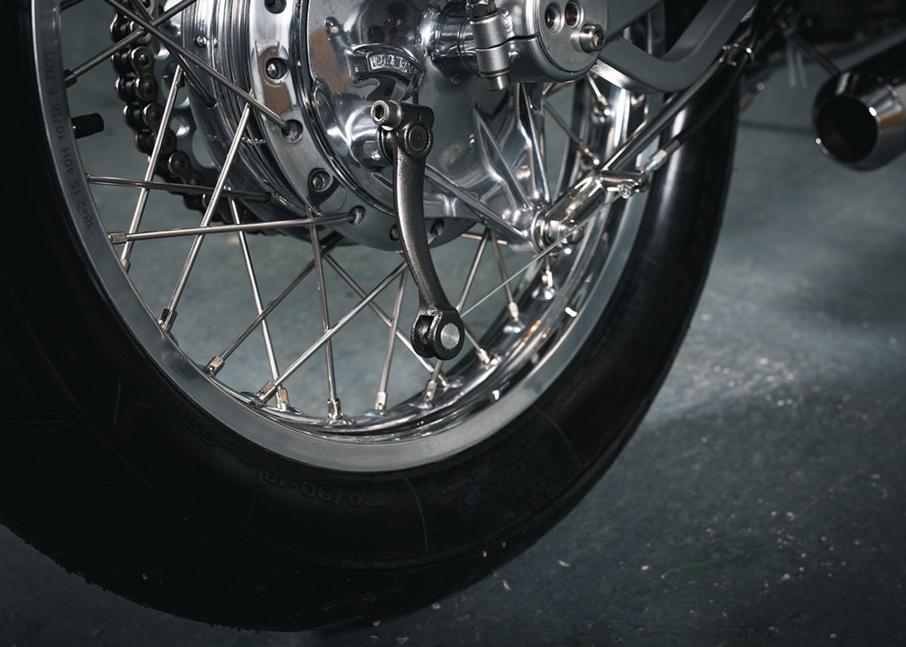 Роскошные диски Morad заспицевали и обули в классическую резину Avon Roadrider. Последний элемент трансмиссии—звездочка Talon.
