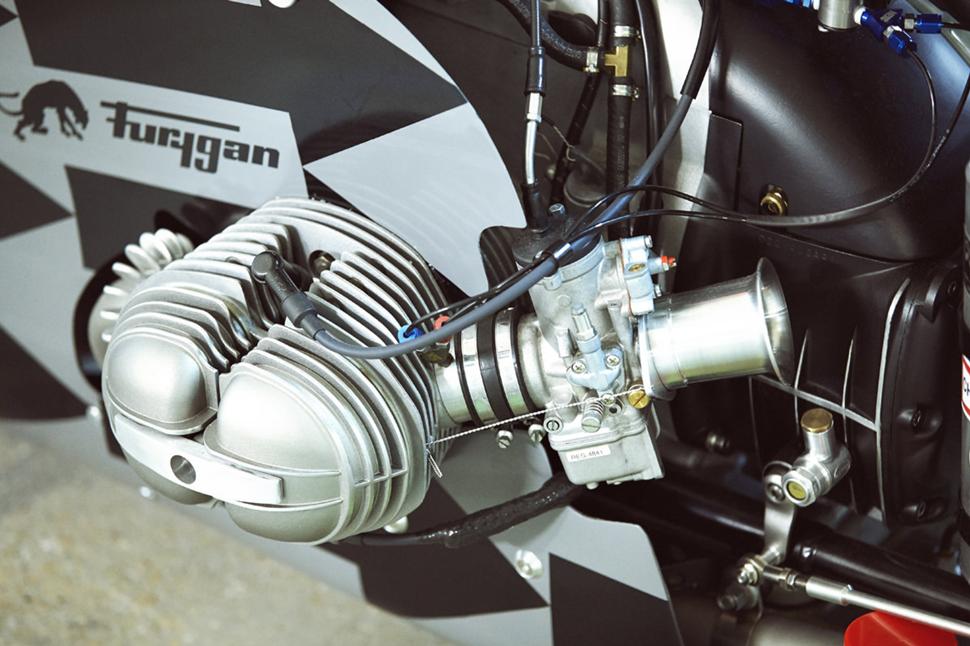 Модификации мощного двигателя BMW R100RS включают установку увеличенных клапанов, карбюраторов Dell’Orto PHM40, 336-градусного распредвала, керамического диска сцепления HPN и коробки передач BMW R100R. Для широкой настройки двигателя Себ обратился за помощью к специалисту из Edelweiss Motosport, который оснастил его гоночными поршнями, специальными цилиндрами от BMW R100GS, большими клапанами и зажиганием с двумя свечами.