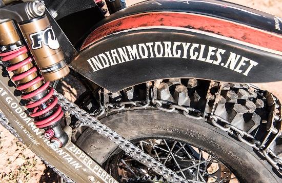 Увеличение маятника стало одной из главных модификаций, чтобы переделать Indian scout в кроссовый байк. Для этого создатели связались с BTR Moto. Эта компания уже много лет занимается производством деталей для кроссовых мотоциклов, поэтому за короткое время они смогли сделать маятник на 254 мм длиннее стокового. Кроме того, они смогли установить шину Firestone от Willys Jeep (которую затем обернули здоровенной цепью для мощного сцепления).