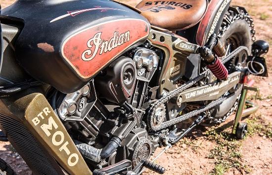Мотоцикл Indian Scout образца 2015 года был переделан в монстра, пожирающего на своем пути грязь и преодолевающего холмы, по просьбе Indian Motorcycles для того, чтобы его можно было представить на ралли.