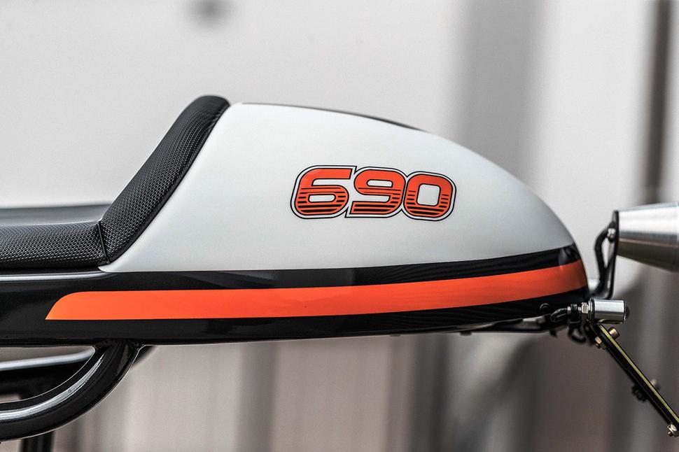 Модельный ряд KTM развивается усиленными темпами, и компания за последние годы совершила мощный прорыв в плане качества и надёжности своей техники, но вот возможность как-то выделиться из многотысячной толпы других владельцев KTM пока с завода не предусмотрена. Приходится вкладывать свои силы и средства - как, например, австралиец Джеймс Кэмпбелл, сотворивший убийственный KTM 690 Cafe Racer, в котором классические черты дизайна подчёркивают не только производительность, но и характерные особенности внешности донорской модели.