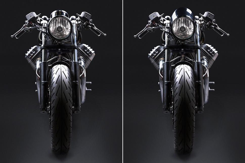 Стефано рассказывает, что все случилось довольно интересно. К нему пришел Энди Чейз (музыкант и продюсер из Нью-Йорка) и буквально влюбился Diabola V35C. Нас впечатлил новый 1380-кубовый двигатель Moto Guzzi, причем намного больше, чем байком California 1400 Touring, для которого он был построен. Стефано и Энди сразу нашли много точек соприкосновения, и они решили объединить усилия и все-таки переделать мотоцикл.