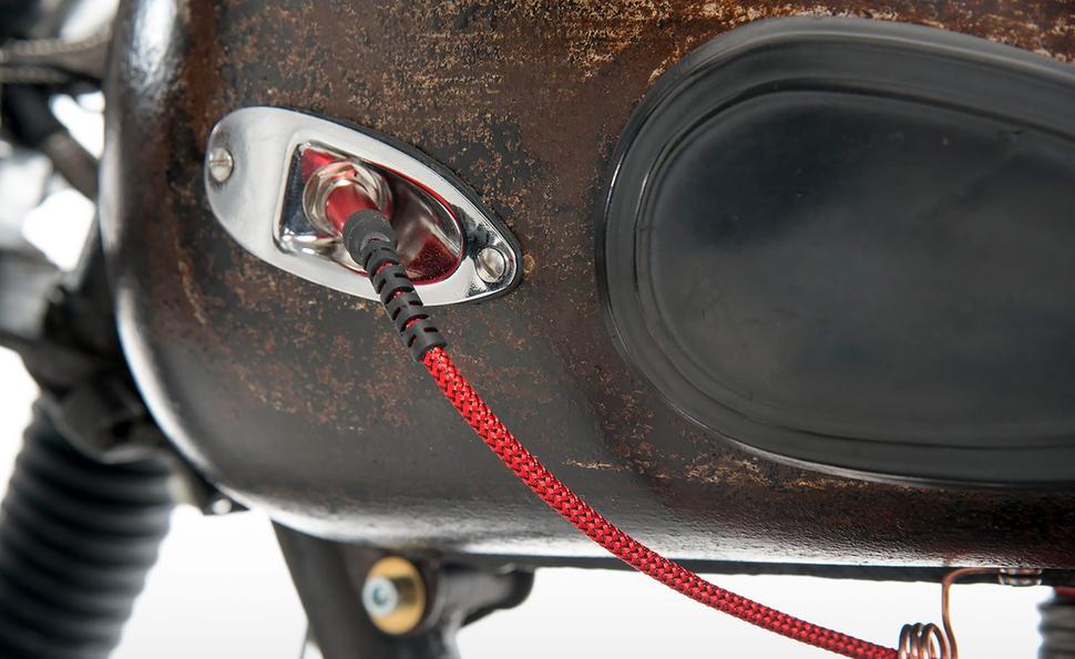 А чтобы придать мотоциклу немного рок-н-ролла, Юрген встроил в него сбоку гнездо от электрогитары Fender Stratocaster. Мотоцикл запускается, когда в него вставлен джек. Названный “Electric Ladyland", этот старенький Минск несёт в себе шарм старого доброго мира даже вопреки тому, что работает на электричестве.