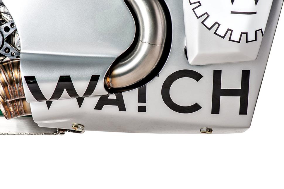 Верхняя половина обтекателя представляет собой модифицированный обтекатель от спортбайка Ducati Panigale. Седло обтянуто той же Алькантрой, что используется на многих гоночный байках.