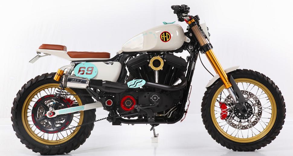 Кастомайзер Фрэн Манен не стал выбирать, в каком городе ему обосноваться - его мастерские есть в обоих. Под брендом Lord Drake Kustoms вам сделают всё что душа запросит - от бодрого кафе-рейсера и до аутентичнейшего чоппера. Так что, когда поступила заявка на модный скремблер для двоих, был взят скромный Harley Davidson Sportster 883 и превращён в Urbantracker - то есть, городской трекер.