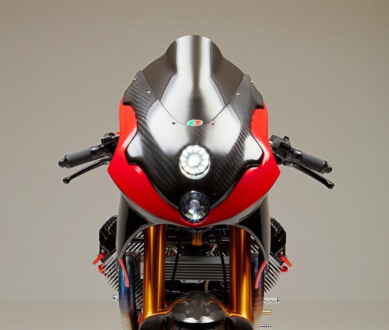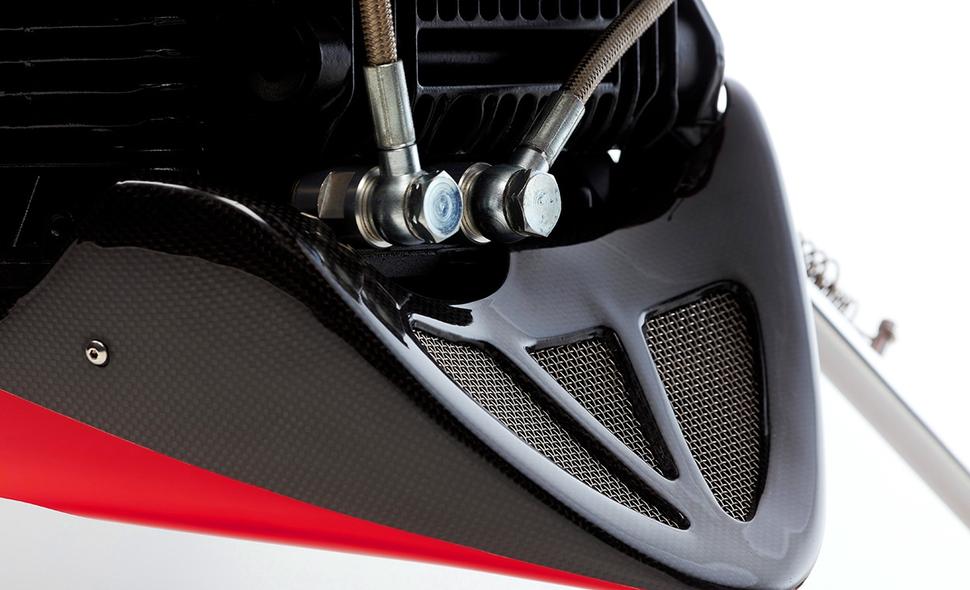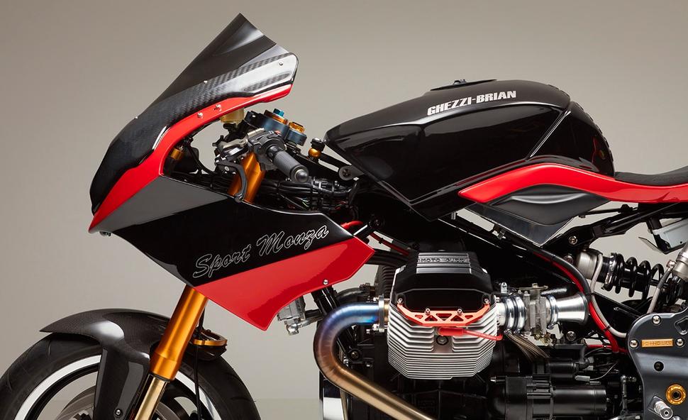 Moto Guzzi 1100 Sport стал на целых 53 килограмма легче, чем в день, когда он покинул завод в Манделло - сейчас он весит около 180 килограммов. Комплект от Ghezzi-Brian обширен: в него входят передний и задний подрамники, новая облицовка, включая цельный фиберглассовый кожух бензобака-основу сиденья, а также нижнюю защиту из карбона.