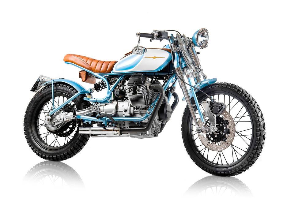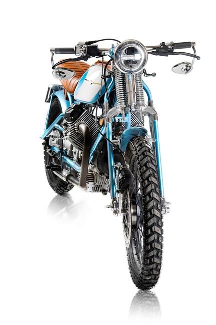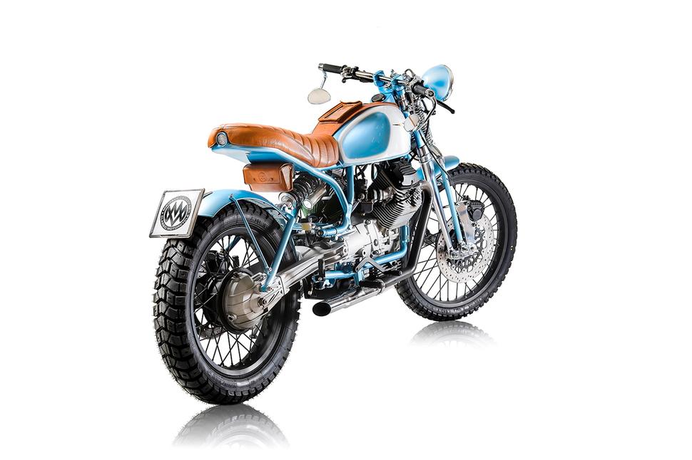 До этого он даже не менял масло на своих мотоциклах, поэтому решил пройти ускоренный курс, чтобы лучше понимать объекты своей любви. Первая часть обучения состояла в том, чтобы отправиться на охоту за старым мотоциклом, который можно будет разобрать на куски, и он направился в ближайший мотосалон. Уехал он оттуда с "четырьмя старушками", как он их называет. Он не только разобрал их на запчасти, но и превратил три из них в совершенно великолепные кастомы. В общем, вышло так, что последние десять лет Марко Маттеуччи занимается кастомайзингом, эффектно совершенствуя свой стиль, бросая вызов условностям и применяя свой природный талант к дизайну. Одним из первых проектов Марко был Guzzi V35, потом он построил ещё один, потом ещё, а вот этот мотоцикл тоже когда-то был V35-м.