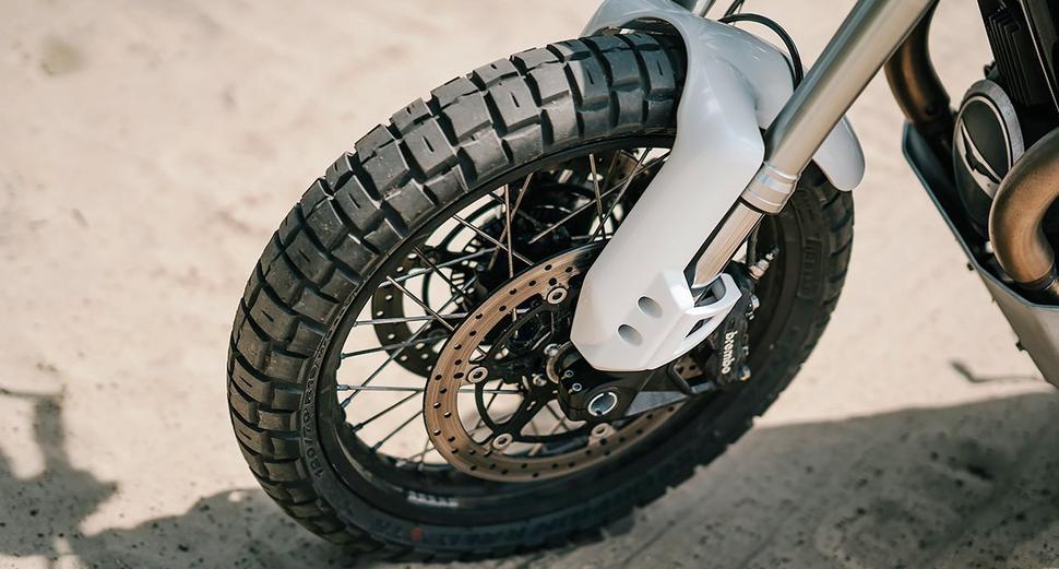 Отмыв грязь с хорошенько выгулянного Moto Guzzi V85 TT, Люк раздел его и принялся заказывать комплектующие. Для начала - универсальные шины Pirelli Scorpion STR Rally и полностью настраиваемый кастомный задний амортизатор от TFX Suspension. А затем Люк полез в проводку, чтобы отключить трекшн-контроль и ABS.
