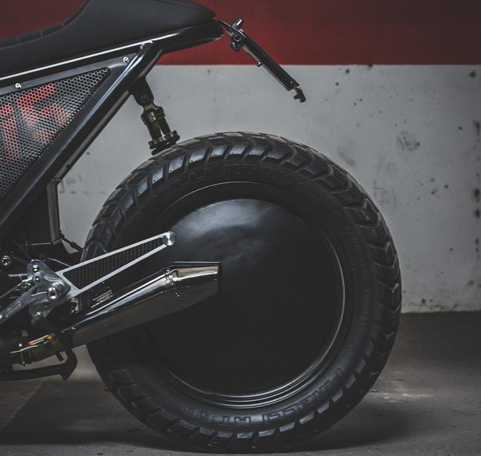 В задней части видим фонарь Highsider, установленный над колесом, и модернизированную настраиваемую заднюю подвеску Hagon.