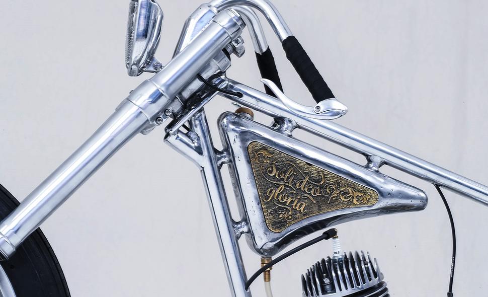 Ещё Wannabe создали литые латунные вставки бензобака и сиденья вместо окраски. На них изображён слоган мастерской "Soli Deo Gloria" - латинское выражение "Слава только Богу", которое использовалось классическими композиторами, например, Бахом и Генделем.