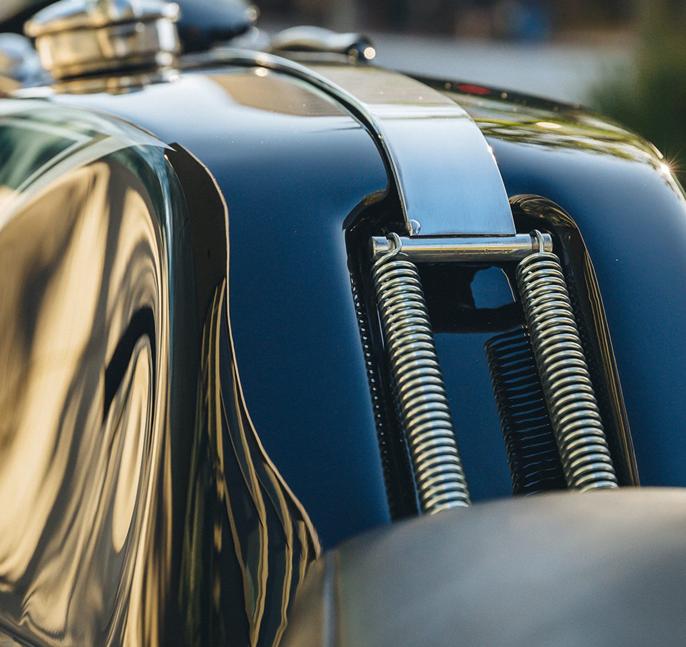 В конце концов Майк решил использовать шины Avon, хотя японские шины Dunlop K181 лучше вписались бы в общую концепцию. Только здесь, а также в случае с крышкой топливного бака, мастер отошел от концепции и сделал выбор в пользу внешней эстетики. Несмотря на то, что двигатель славится своей износоустойчивостью, Майк полностью его перебрал и установил кольца и поршни NOS. Он говорит: