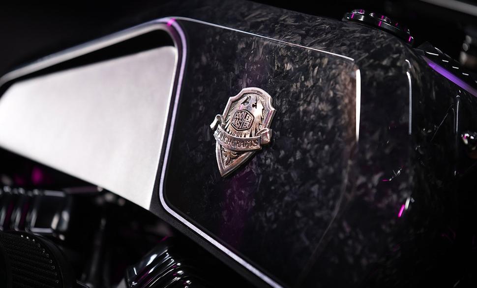 В честь своего тридцатилетия Cooler Master попросили меня собрать кастомный мотоцикл и соответствующий ему компьютерный корпус, - рассказывает Уинстон. -Я решил объединить характерные элементы из двух миров - фирменный фиолетовый свет бренда, острые грани и квадратные формы их корпусов, с фирменными деталями Rough Crafts - пластинчатыми рёбрами из штампованного карбона.