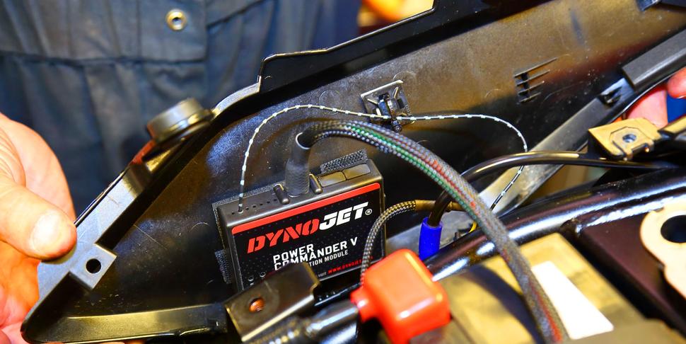 К нему была установлена новенькая турбина Garrett на шариковых подшипниках, подключена через изящный манифольд из нержавеющей стали, оснащена перепускным клапаном Tial, самодельной камерой, и по сути всё. Подачей топлива управляет Dynojet Power Commander с датчиком абсолютного давления под пассажирским сиденьем, а плоский фильтр-блинчик K&N аккуратно примостился на правом боку мотоцикла. А куцая выхлопная труба с другой стороне заботится об отводе газов, отработавших в двигателе и покрутивших турбину, и о том, чтобы соседям не жилось слишком легко. Наддувом управляет ручная крутилка, позволяющая выбирать между 220 и 260 лошадьми.