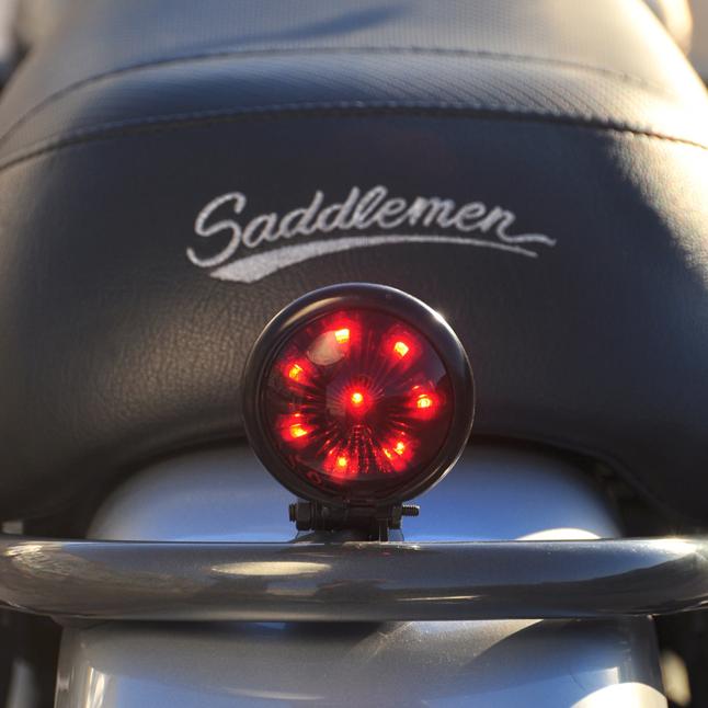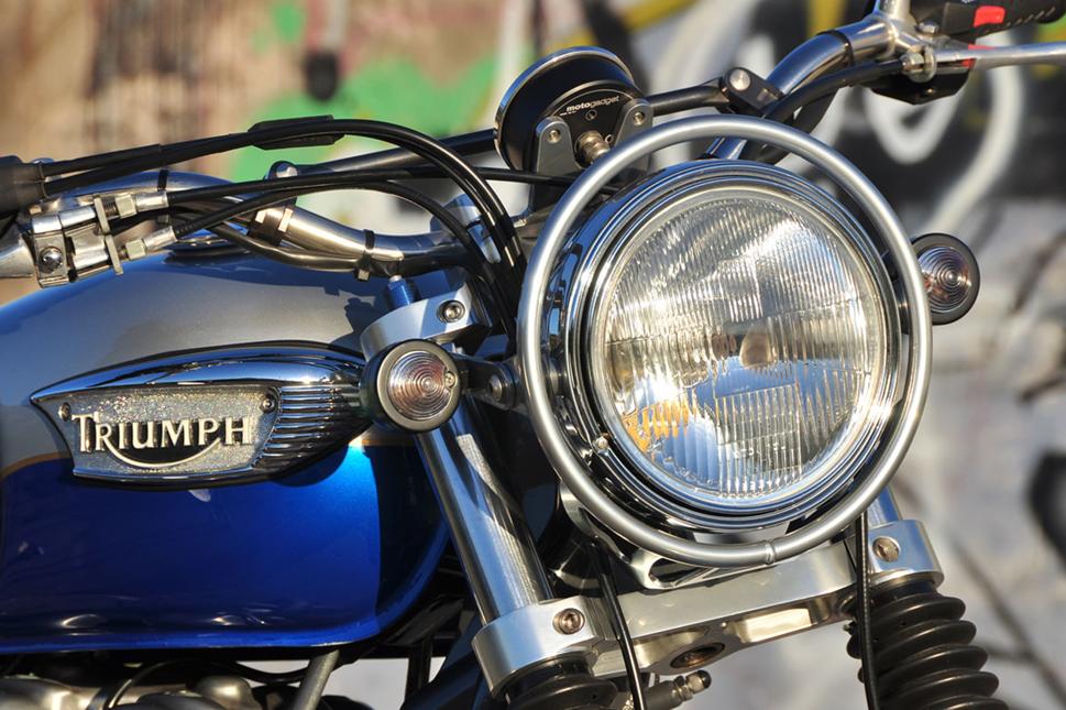 На круглом креплении в стиле Байя установлена стоковая передняя фара Bonneville, классический задний фонарь LSL состоит из восьми светодиодных лампочек.