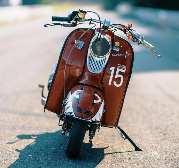 Типичным участником гонки на скорость является большекубатурный мотоцикл с удлинённой колёсной базой, жёсткой рамой, подачей закиси азота и каким-нибудь видом нагнетателя. Но встречаются и более редкие звери - например, раритетные скутеры от прекративших своё существование немецких брендов, типа этого NSU Prima 3 1959 года.