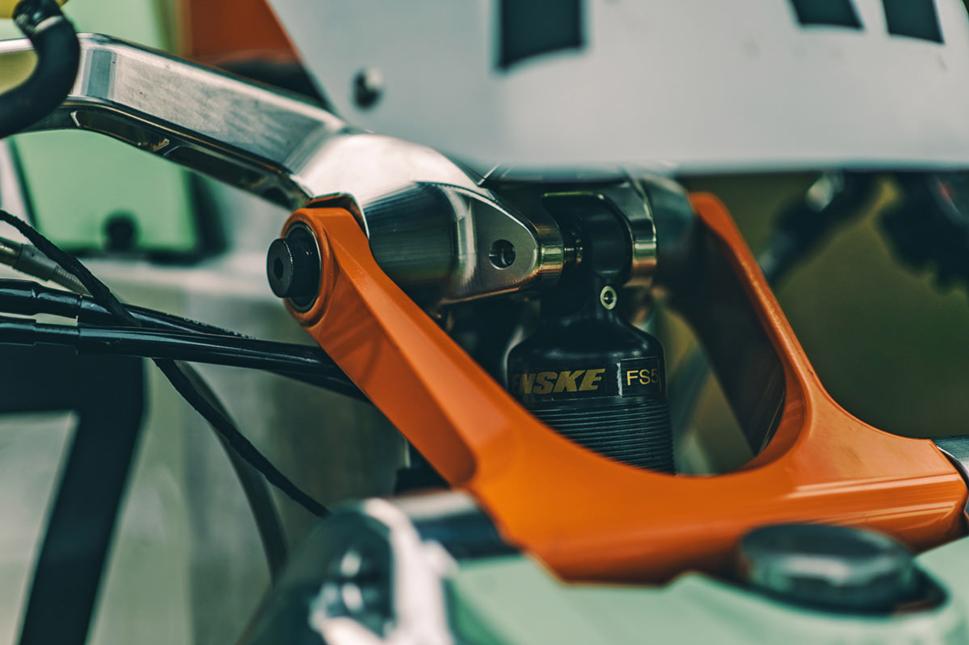 Перья вилки были вырезаны на станке из алюминиевой заготовки, также мотоцикл оснащен алюминиевым рулем, чашей сиденья и тормозной системой Brembo, сделанной по индивидуальному проекту. Колеса BST невероятно легкие, потому что сделаны из углеволокна, чтобы соответствовать таким же легким панелям кузова из углеволокна.
