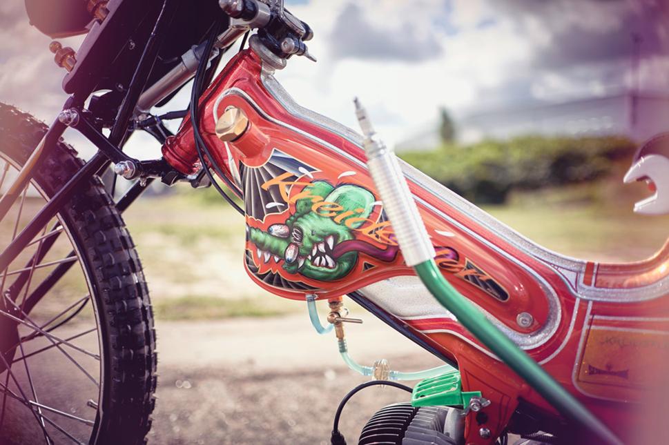 Эти дни давно остались в прошлом. Сегодня Дэнни уважаемый создатель кастомов в Германии, он является владельцем собственной компании под названием SchrammWerk GmbH. На прошедшем в Абу-Даби кастом-шоу он пообщался с другими мастерами, и в нем пробудились воспоминания. Тогда он решил возродить свою 50-кубовую машину, с которой он был так свободен.