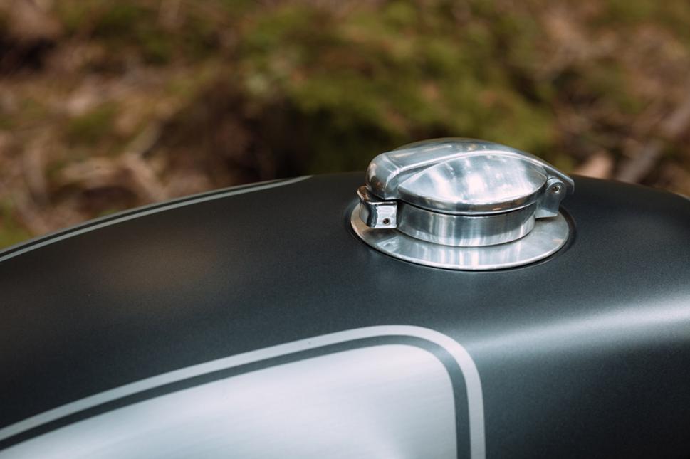 Все элементы связаны вместе при помощи топливного бака. Он был позаимствован у другого экземпляра BMW R, но на этот раз модели R90/7. Рамон методично его отшлифовал и выкрасил в серый цвет прежде, чем покрыть все прозрачным лаком. Затем он посмотрел на результаты своей работы в солнечном свете, обнаружив недостатки, мастер снял всю краску и начал процесс с самого начала, пока не добился совершенства. Финальным штрихом стала алюминиевая крышка горловины от Huggett.