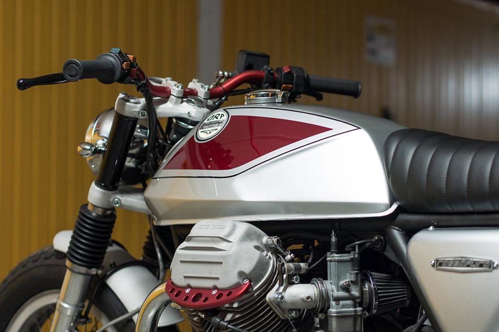 Представляем вам последний проект ORP под названием Quattrotempi созданный на основе Moto Guzzi 1000 SP. Это название обозначает «четыре такта», мотоцикл принадлежит заказчику из Рима. Филиппо говорит, что перед ним стояла не простая задача, ведь заказчик хотел использовать мотоцикл и в городе, и на холмистой сельской местности, а также ему очень импонировал стиль Брэт, но при этом он хотел комфорта.