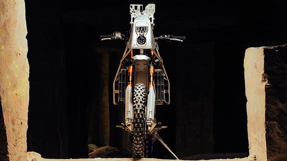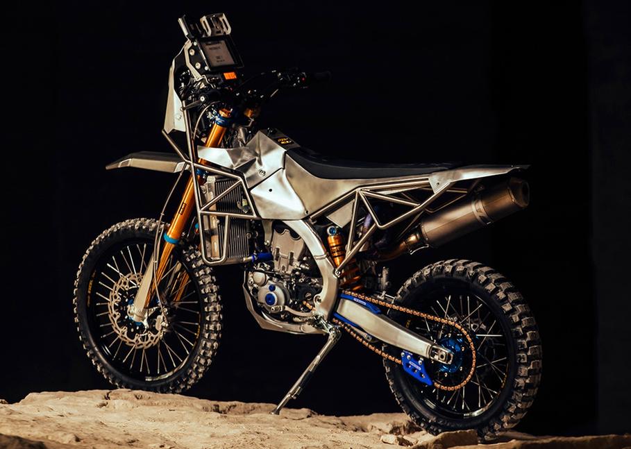 В этом мотоцикле всё, за исключением оригинальной алюминиевой опоры двигателя и самого мотора (с новыми картами), было перенесено, модифицировано, доработано или изготовлено с нуля. Жером и Ивон разработали и построили новую раму-клетку из трубки, несущую бак и аирбокс, скрупулёзно изготовленные из алюминия. Все компоненты обвеса Yamaha WR450F установлены на быстросъёмах для оперативного доступа при ремонте и обслуживании. Бак теперь вмещает несколько больше, чем заводской 7,9-литровый, но, конечно, не стал таким гигантом, как 32-литровые Dakar-овские баки.