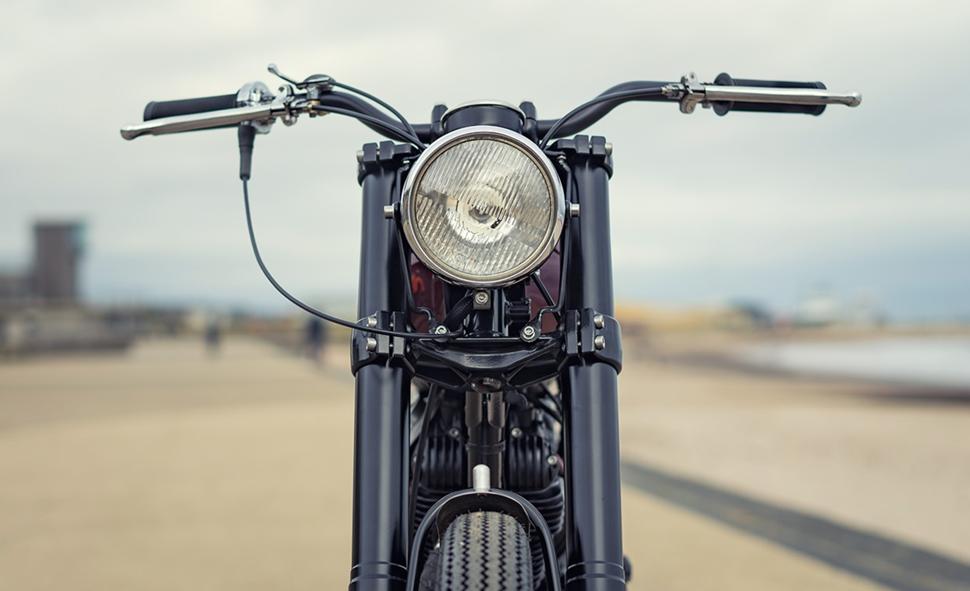 Руль от Renthal оснастили копией Triumph-овских рычагов, заменили тросики и проводку. Новый спидометр в винтажном стиле изготовлен Smiths. Выключатель зажигания перенесли под сиденье справа.
