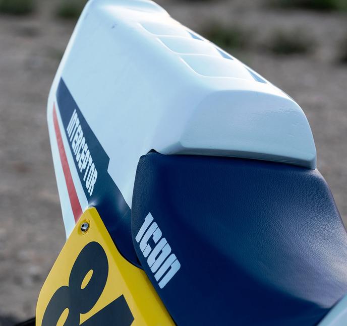 Новая графика, украшающая Interceptor, отдаёт дань уважения старой доброй HRC-шной расцветке - красно-бело-голубой. ICON, как истинные американские патриоты, очень ценят эту палитру.