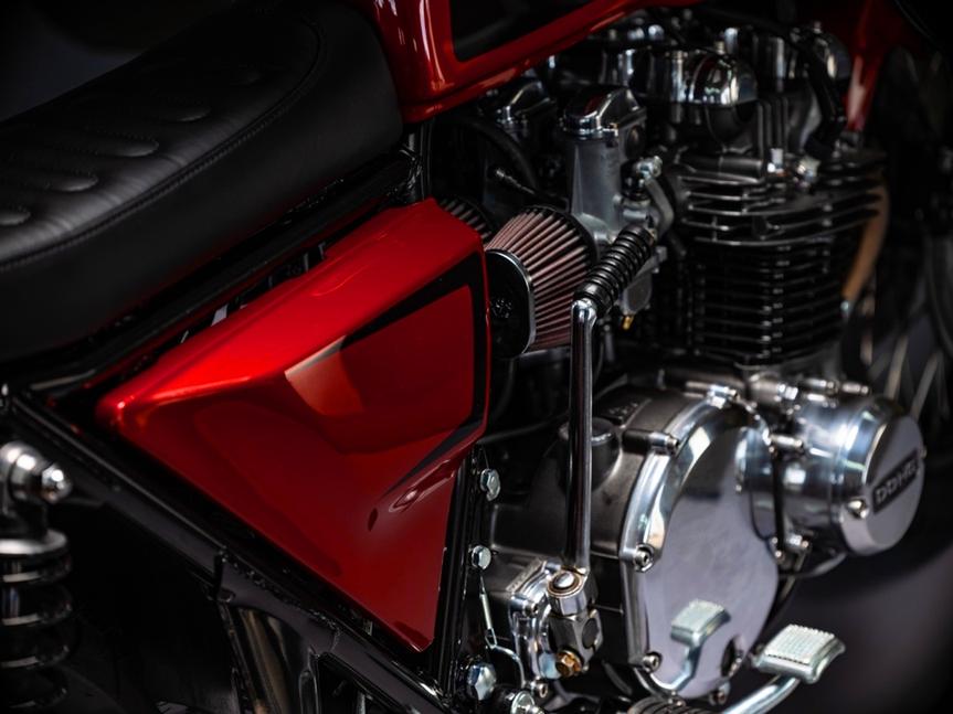 Осанку и клиренс Kawasaki KZ1000 Шон выставил, перебрав вилку и изменив её внутренности на 4 сантиметра. Назад были установлены новые амортизаторы Ikon Dial-a-Ride, идеально подошедшие по высоте. Когда с силуэтом мотоцикла был полный порядок, Шон приступил к разборке. Всё, чему предстояло стать чёрным, было зачищено и отправлено в Right-a-Way Powder на глянцевую порошковую окраску. Обвесом занялся Дэнни из Knight’s Kustoms. Заказчик проекта, Боб, выбрал яркую красную краску Ford Raptor Red - великолепный выбор, подчёркивающий классический дизайн мотоцикла.