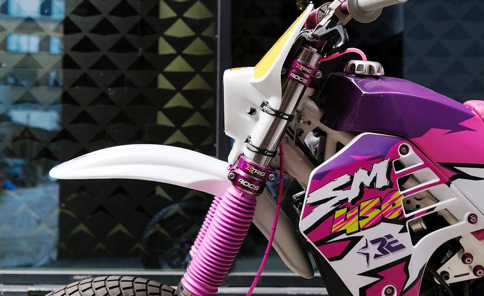 Идея, к которой мы пришли - по сути, влажные мечты подростка: супермото начала 90-х, из той эпохи, в которой мы с Райаном иногда застреваем, но которая отражает наш стиль, - делится Мэтт. -Источником вдохновения стали старые журналы с гоночными мотоциклами в кислотных цветах и видеозаписи о первых днях фристайл-мотокросса на VHS.