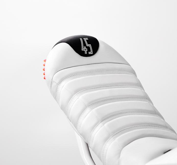 Изготовление седла занялся Круно Накич, мастер, который выполняет все кастомные проекты из кожи для BSTN. Седло изготовлено из неопрена черного цвета, четырех видов материалов для использования на открытом воздухе и белой кожи. Седло было готово всего за два дня.