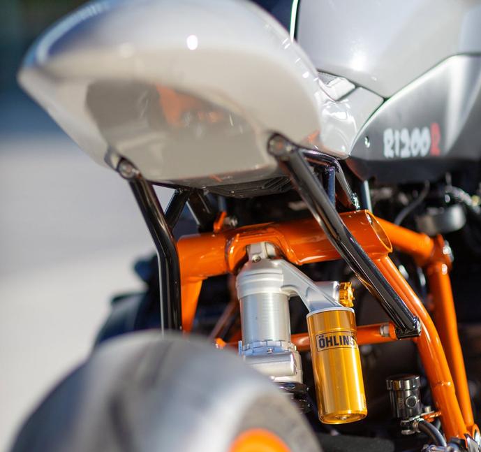 Ронна сварил подрамник из стали, легированной хром-молибденом, а затем выковал идеальнейший алюминиевый хвост. В раму встроены две задние светодиодные фары. Все детали электроники спрятаны под сиденьем.