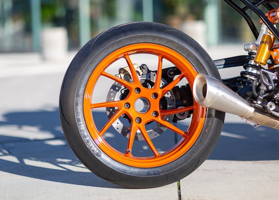 В первую очередь Ронна снял все детали, которые не помогают мотоциклу разгоняться и останавливаться. Затем он принялся за разработку новой хвостовой части.