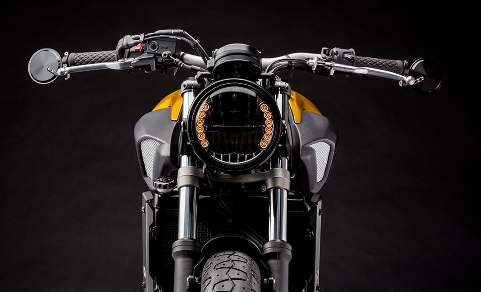 Грег не стал трогать топливный бак, зато значительно доработал все детали вокруг него. Например, он заменил весь пластик черного цвета на матовые детали из углеволокна от Powerbronze.