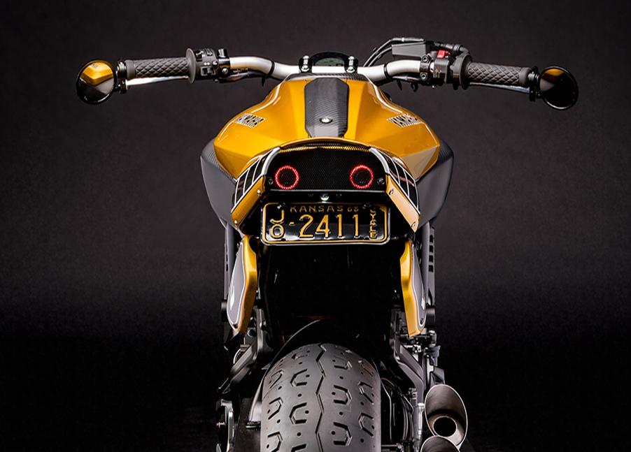 Хвостовая часть мотоцикла претерпела более значительные изменения. Мастер полностью переделал подрамник. Также он заново спроектировал хвостовую секцию из стали, она включает две точки крепления для номерного знака.