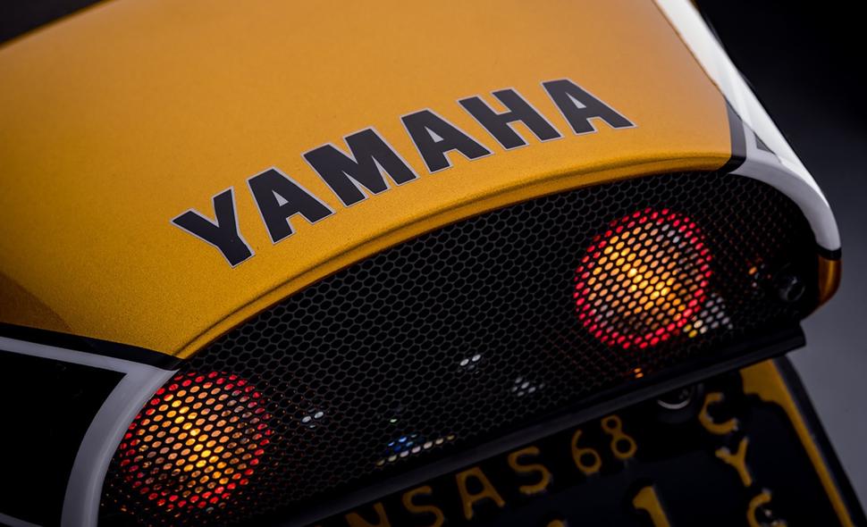 Седло—единственный компонент, позаимствованный у XSR700. Сзади, за сетчатым экраном установлены две круглые светодиодные фары. Эта черта присуща моделям Ferrari 488 и поздней модели Ford GT. Передняя фара классическая, но внутри большого, круглого фонаря используются светодиодные приборы, включая сигналы поворотов. Грег очень постарался, чтобы задняя часть мотоцикла стала продолжением заводских линий. Но именно масса небольших изменений делают этот кастом особенным. Если присмотреться, то можно увидеть, что современные диски заменили на классические, спицевые от Exact. Они обуты в шины Pirelli Phantoms. Модель XSR700 оснащена такой же ретро резиной. Заводские тормозные диски мастер заменил на современные перфорированные диски от Brembo.