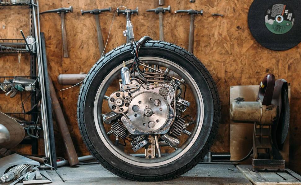 Но это был еще не конец. Мотоцикл должен был быть переднеприводным с радиальным двигателем, установленным в переднем колесе. Когда Крейг согласился на этот проект, он решил, что сможет просто купить радиальный мотор в интернете и затем приспособить его к мотоциклу.