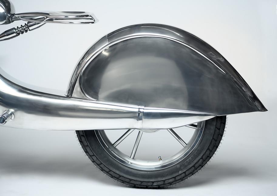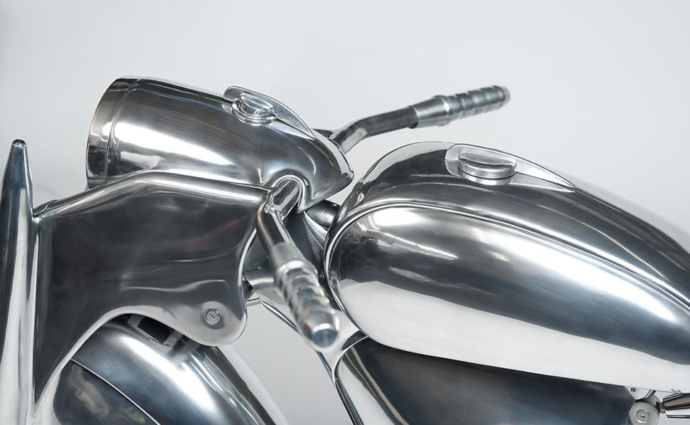 Крейг сделал даже крошечный аммортизатор, который поддерживает алюминиевое сиденье. Среди других изысканных деталей можно отметить крышку топливного бака и включатель зажигания, а также бесчисленное количество небольших ободков, закрепленных 1,5 мм гайками из нержавейки, что помогло свести к минимуму заметные детали крепления.