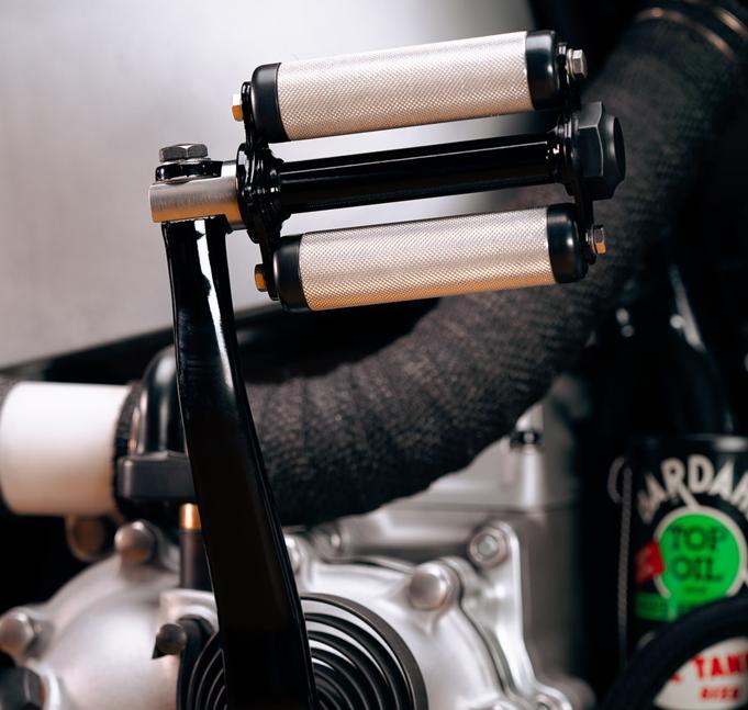 Для этого потребовалось покрыть краску десятью слоями нитроцеллюлозного лака. Эш поручил эту задачу единственной в Швейцарии компании, имеющей разрешение на работу с этим покрытием - специализирующейся на винтажных итальянских автомобилях Autolackiererei René Sahli. Остальные отсылки к Bardahl Specials включают золотые обода, белые выхлопные трубы и кастомный маслоуловитель.