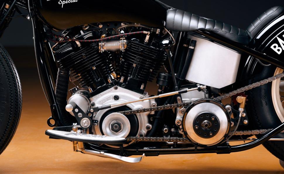 Оригинальная рама Панхэда - один из немногих оставшихся компонентов. В неё был установлен 93-дюймовый Наклхэд от S&S, а также шестиступенчатая трансмиссия 6-into-4 от Baker, устанавливающаяся вместо стоковой четырёхступки. Но даже несмотря на то, что двигатель и трансмиссия Harley Davidson были новыми, Эш не стал оставлять их в стоке. Он заменил болты со внутренними шестигранниками на более винтажно выглядящие шестигранные и под плоскую отвёртку.